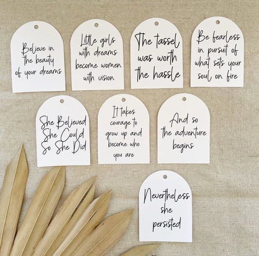 Graduation Centerpiece Tags for Girls (bestseller) Arch tags, sets of 8