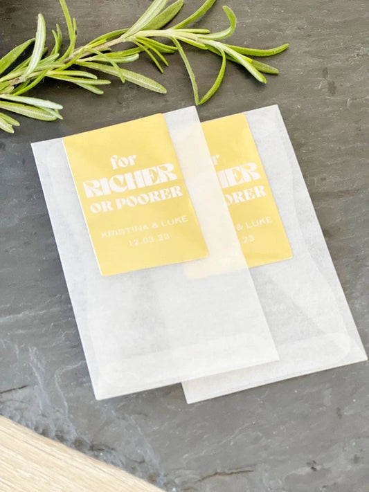 Lottery Ticket Favor Envelopes & Seals, Gold Foil with White Ink Print- Sets of 18