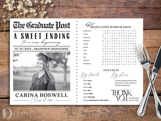 Graduation party placemats, Created with your photo! Sets of 25