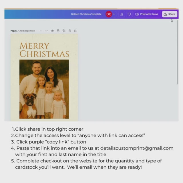 *Once edited, just share it back to detailscustomprint@gmail.com via Canva & we'll print them up! (see video in photo 3)